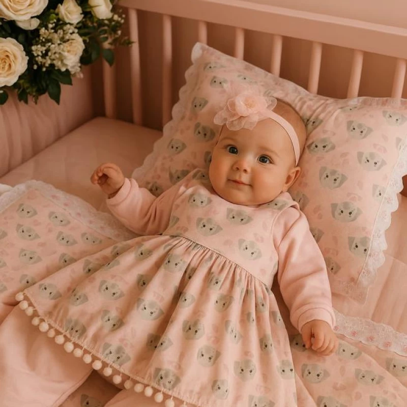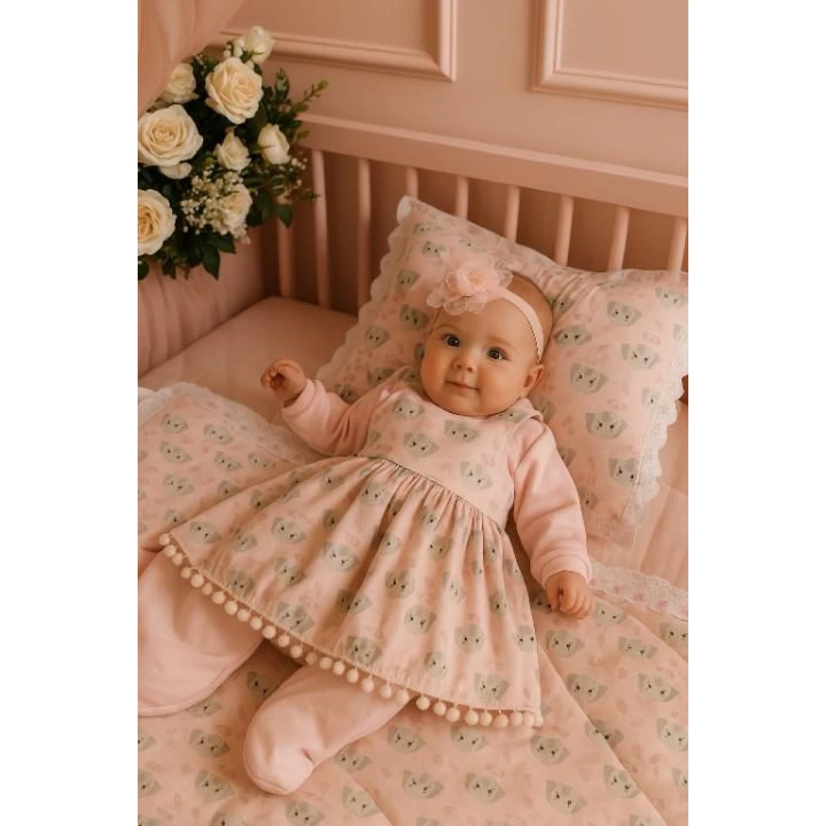 Confeccionada em Triocoline para maior conforto de seu bebê, acabamento com fita pom pom.